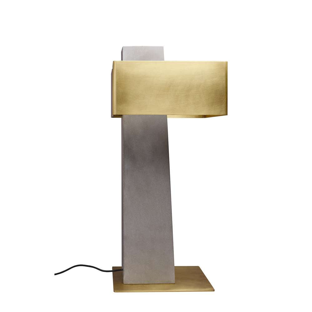 Lampe à poser en béton et acier. Iota, une lampe qui emprunte son nom et sa forme à l