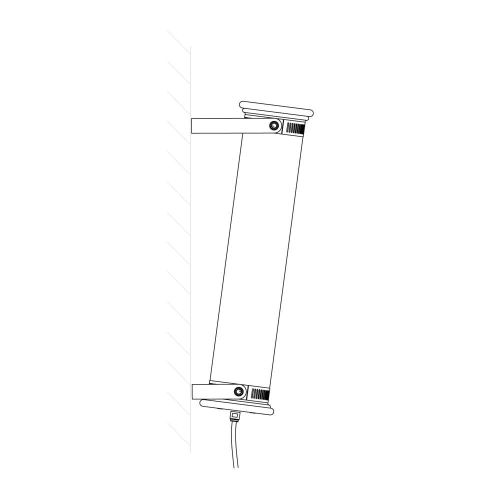Inclined In The Tube wall lamp. In The Tube diffuses a filtered, softened, directed and oriented light via the simple fixed or removable positioning of a shaped filter-mesh or a reflector, whose material gives the colour. Stainless steel for the silver one, anodised aluminium for the copper and gold. The collection evokes spy gadgets à la James Bond, or shuttles à la Jules Verne.
