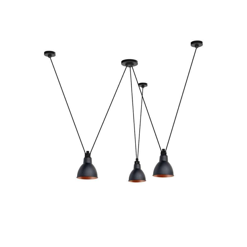 Pendant lamps in cast aluminium and textile cables. Les Acrobates de Gras perform various figures in the air, perched at a height of several metres. The spectacle is bold: in movement, rhythm and colour. The colours and shapes of the Gras reflectors and glass balls (sizes L, XL, Ø175 and Ø250) offer a dynamic and elegant display. Les Acrobates de Gras can be linked together. Each one can perform its number!