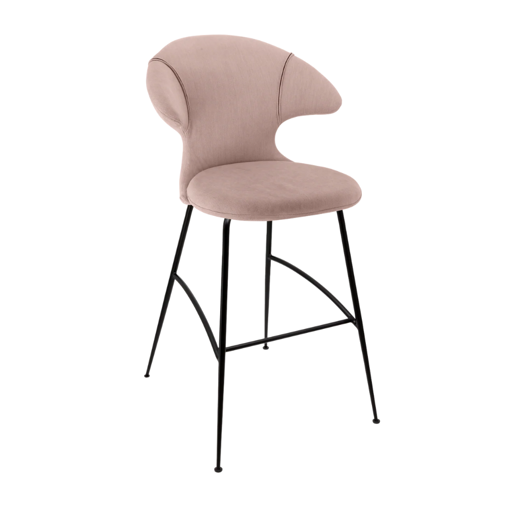 Med sit sorte stålstel og bløde polstring i genanvendt polyester er denne Time Flies barstol fra Umage skabt til at give hjemmet et moderne og afbalanceret udtryk. Designet er let og svungent, med god støtte i både ryg og armlæn – og en komfortabel siddehøjde på 75 cm, perfekt til køkkenøen eller den høje bardisk.