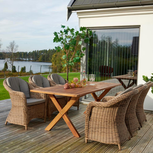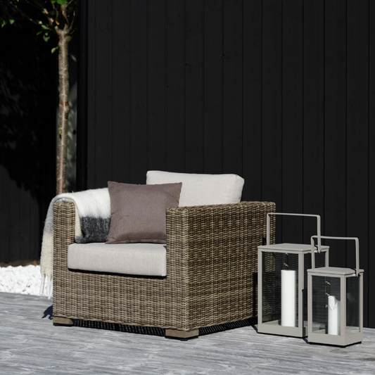 4.615,- kr.Udsalgspris 3.919,- kr.Brafab Ninja loungestol SKU: 4521-63-222• Materiale: Stel i tætvævet polyrattan, hynder i vandafvisende olefinstof • Størrelse: B86 x D88 x H80 x SH44 cm • Leveringstid: 2-4 uger Brafab Ninja loungestolen kombinerer et elegant...-15% -