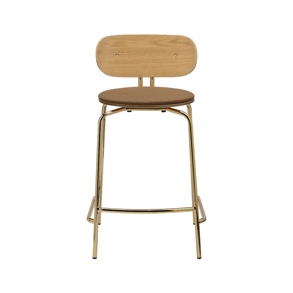 UMAGE Curious Counterstol med polstring i genanvendt polyester er et bevidst valg for dig, der ønsker både komfort og bæredygtighed. De bløde tekstiler, det varme egefiner og de elegante messingdetaljer skaber tilsammen en stol med et eksklusivt, men venligt udtryk.