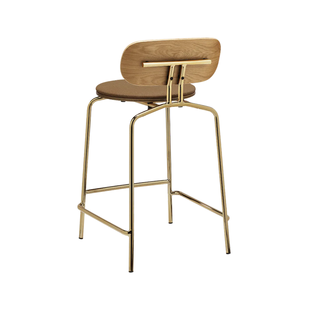 Med sin siddehøjde på 65 cm er den perfekt til hverdagsbrug ved køkkenøen eller det høje spisebord. Det polstrede sæde giver ekstra komfort, mens designets rene linjer og varme materialer sørger for, at stolen passer ind i både moderne og klassiske hjem.