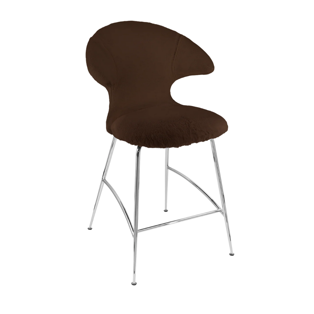 Umage Time Flies counterstol forener blødt tekstil med blankt stål i et moderne og let udtryk. Stellet i forkromet stål tilfører rummet et elegant, næsten svævende præg, mens det lune Teddy-betræk skaber en rar og indbydende siddeoplevelse.  Stolen har en komfortabel ryg, god fodstøtte og polstring, der gør den velegnet til både hverdag og gæstemiddage. Den er ideel ved køkkenøen, hjemmebaren eller som et smukt supplement i åbne rum.  Med sit afbalancerede...