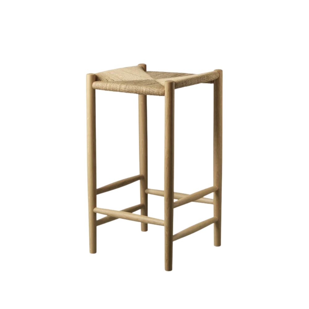 FDB J164C Counterstol – designet af Jørgen Bækmark – er en lavere version af den klassiske J164B barstol, skræddersyet til køkkenøer og lave bardiske. Det enkle formsprog og de naturlige materialer gør den til et oplagt valg for både moderne og klassiske hjem.