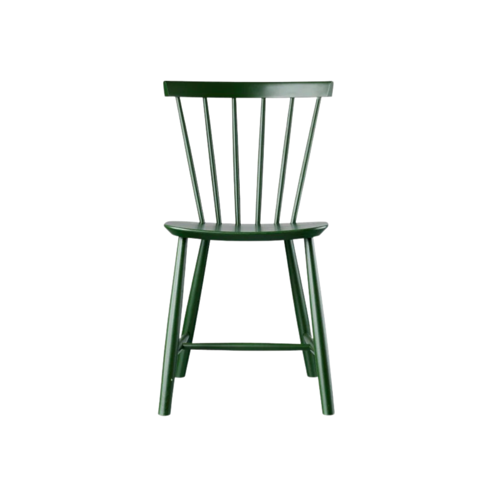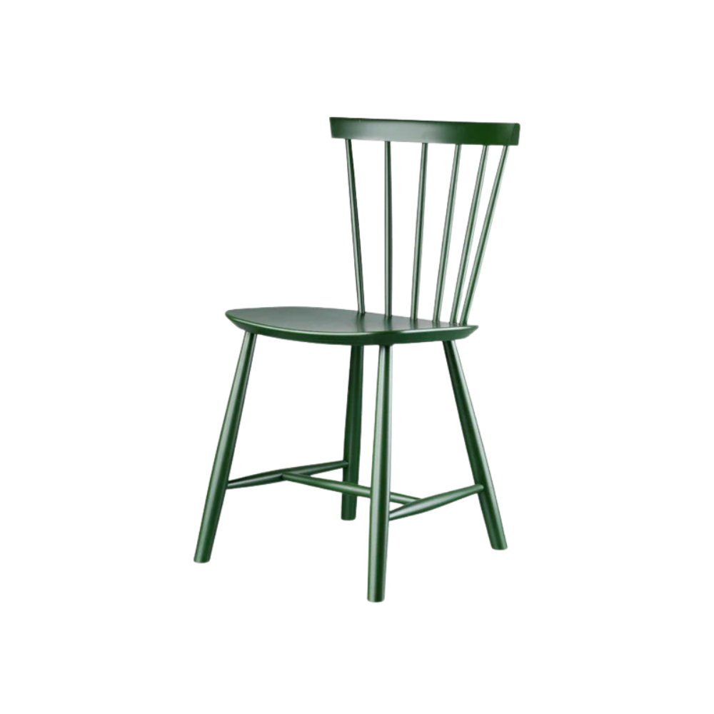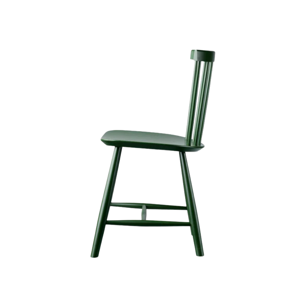 Denne version er fremstillet i FSC-certificeret bøg og malet med vandbaseret maling, som giver en moderne, ensartet finish. Den ikoniske ryglænsløsning med lodrette tremmer giver både støtte og luftighed, og konstruktionen gør stolen let at flytte og nem at stakke, når den ikke er i brug.
