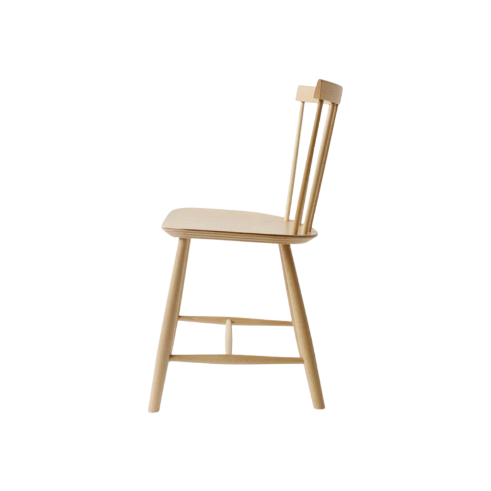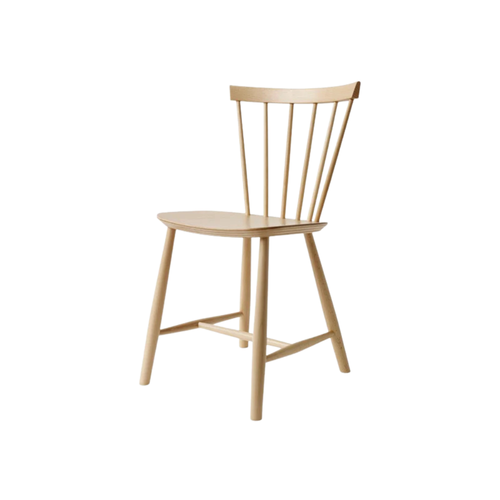 FDB J46 spisebordsstol er en moderne fortolkning af den folkekære J46, designet i 1956. Denne version er fremstillet i FSC-certificeret bøg og lakeret med vandbaseret lak, som giver en glat, beskyttende overflade og lader træets struktur skinne igennem.