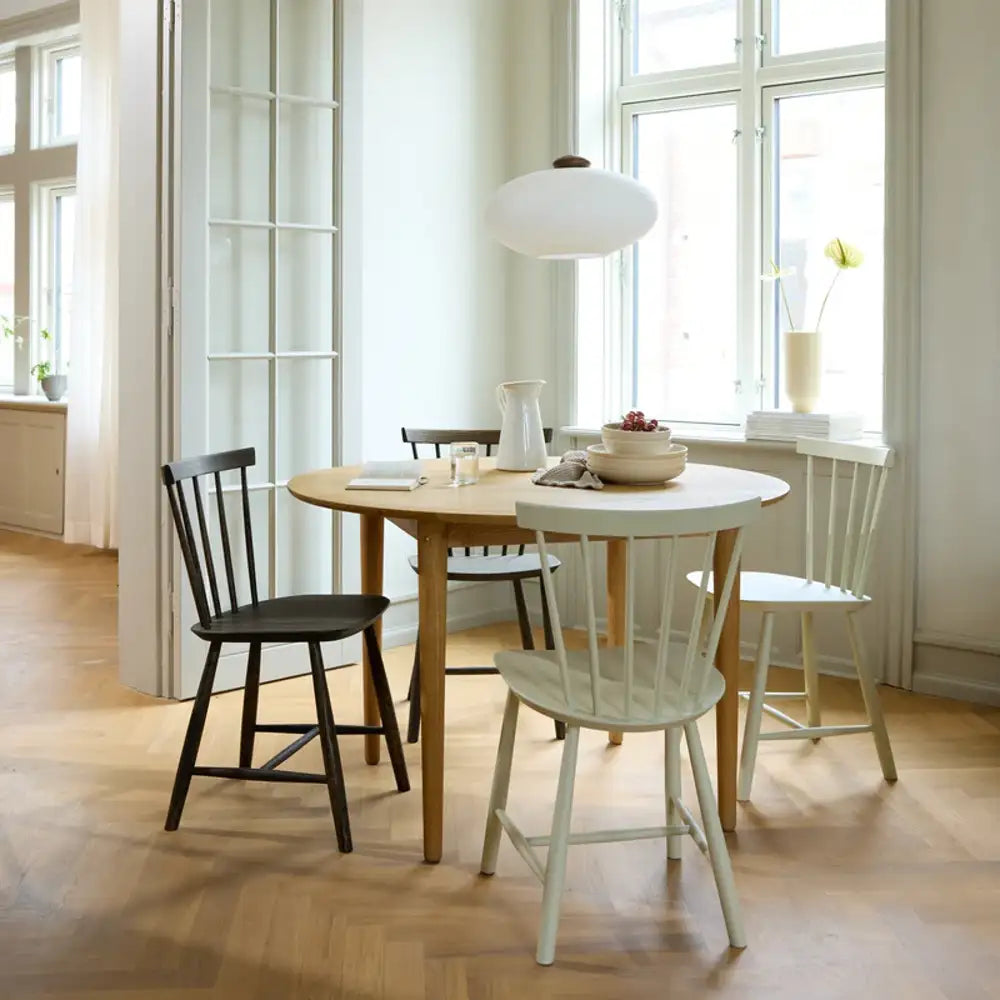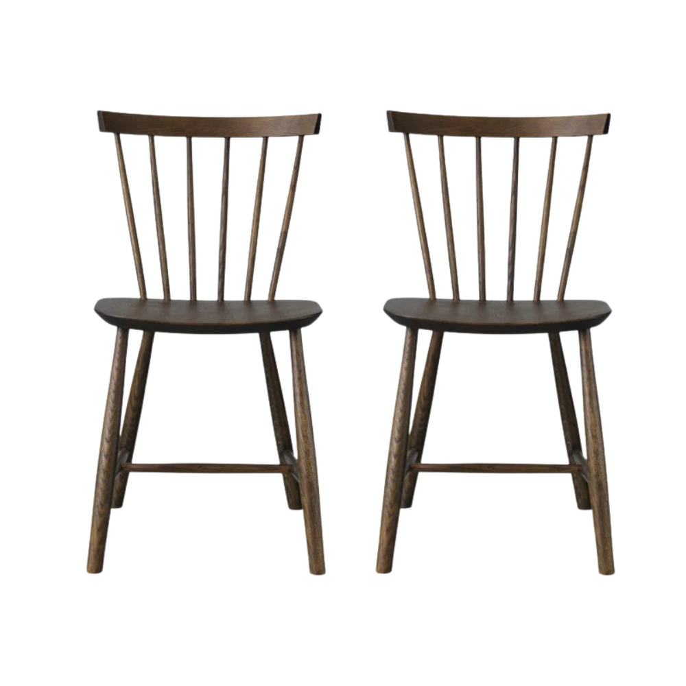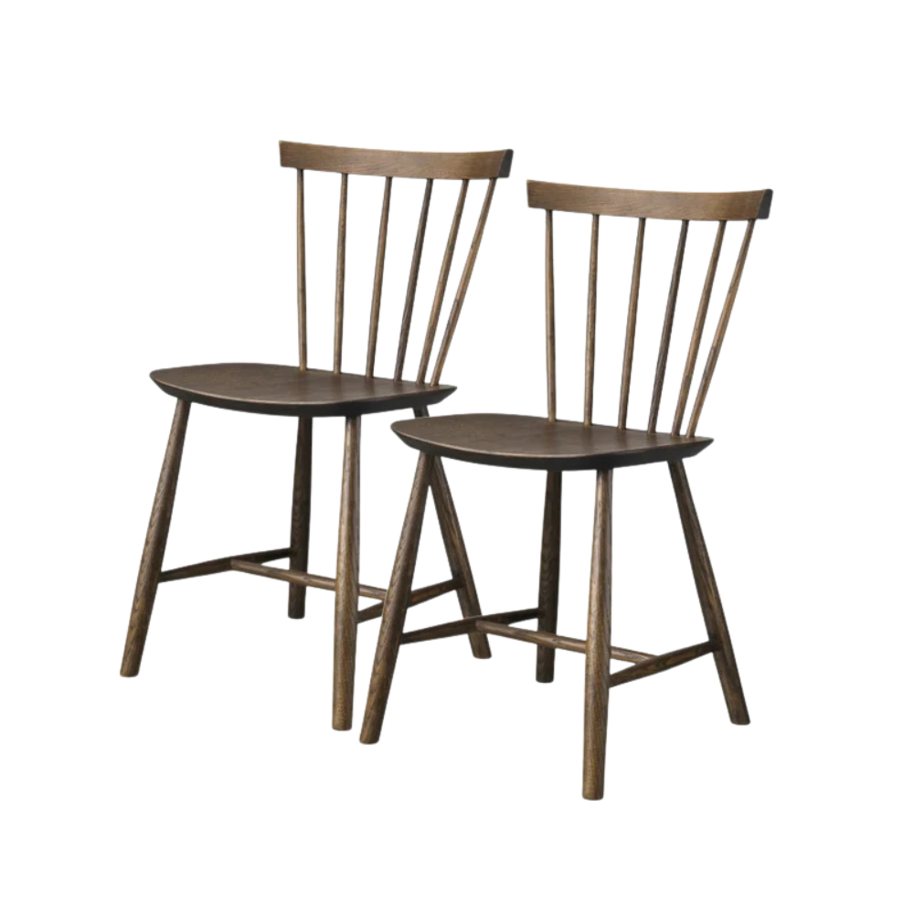FDB J46 spisebordsstol – sæt med to – er en tidløs klassiker udført i massiv, FSC-certificeret eg med en elegant røgfarvet oliefinish, der giver dybde og karakter til træets naturlige udtryk.