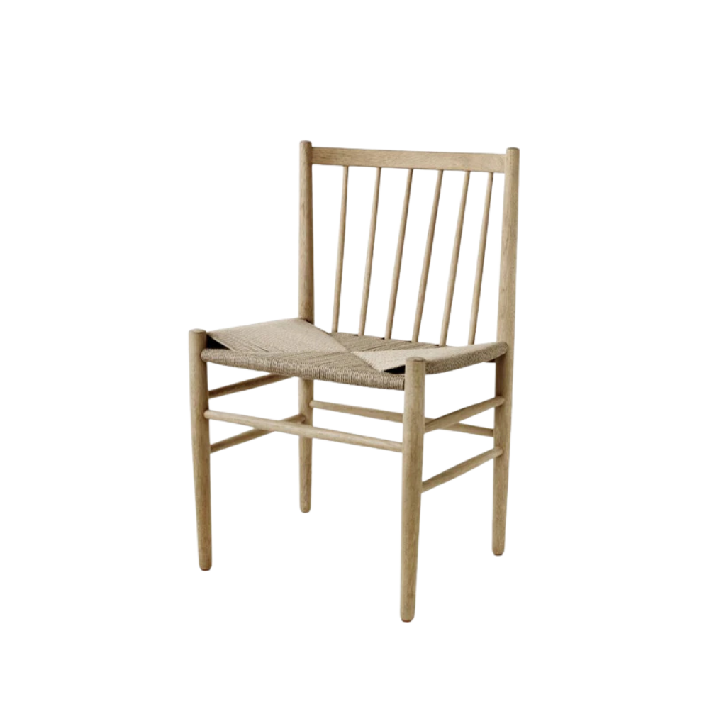 Med sin siddehøjde på 45 cm og sædedybde på 39,5 cm byder J80 på god støtte og naturlig siddekomfort. Formen er både stilren og funktionel, hvilket gør den velegnet i både spisestuen og det åbne køkkenalrum.