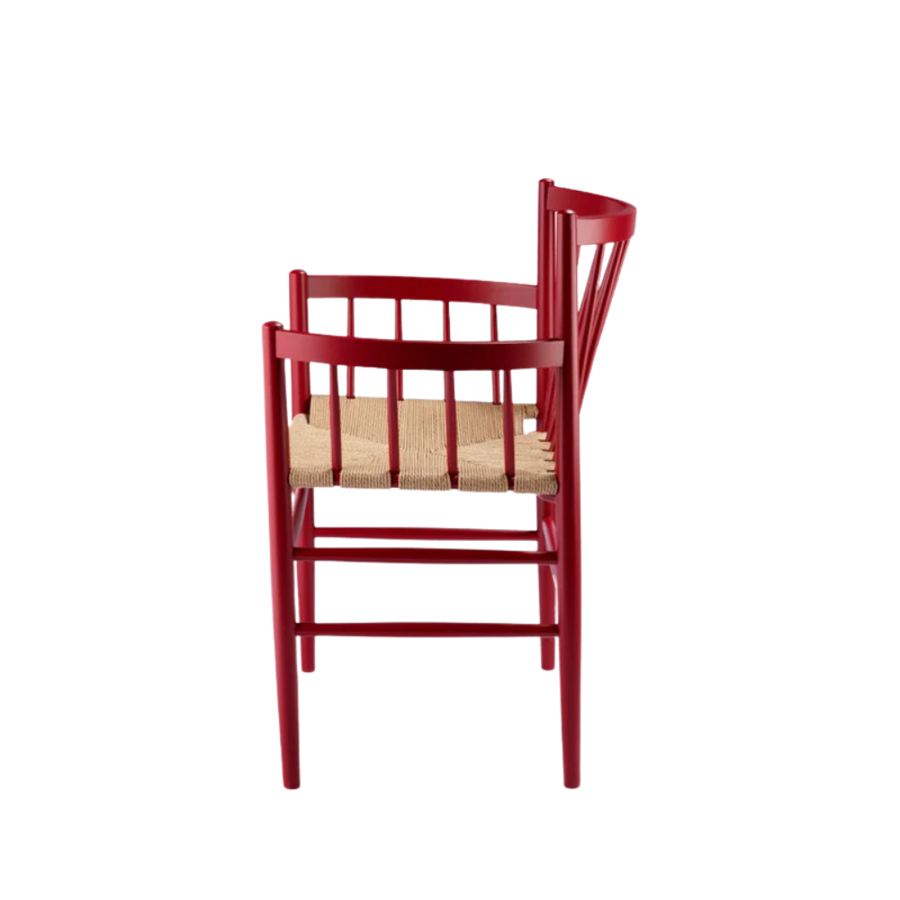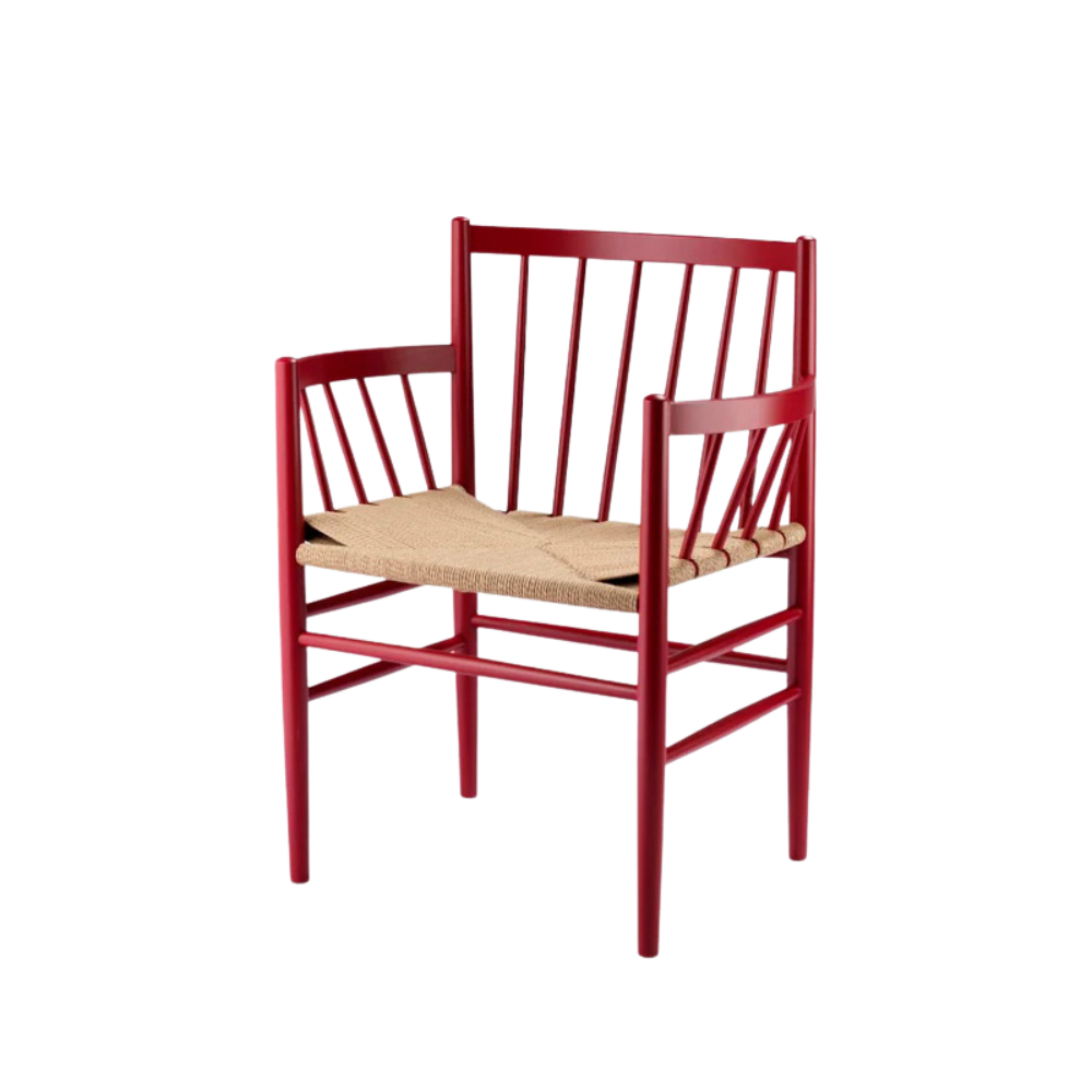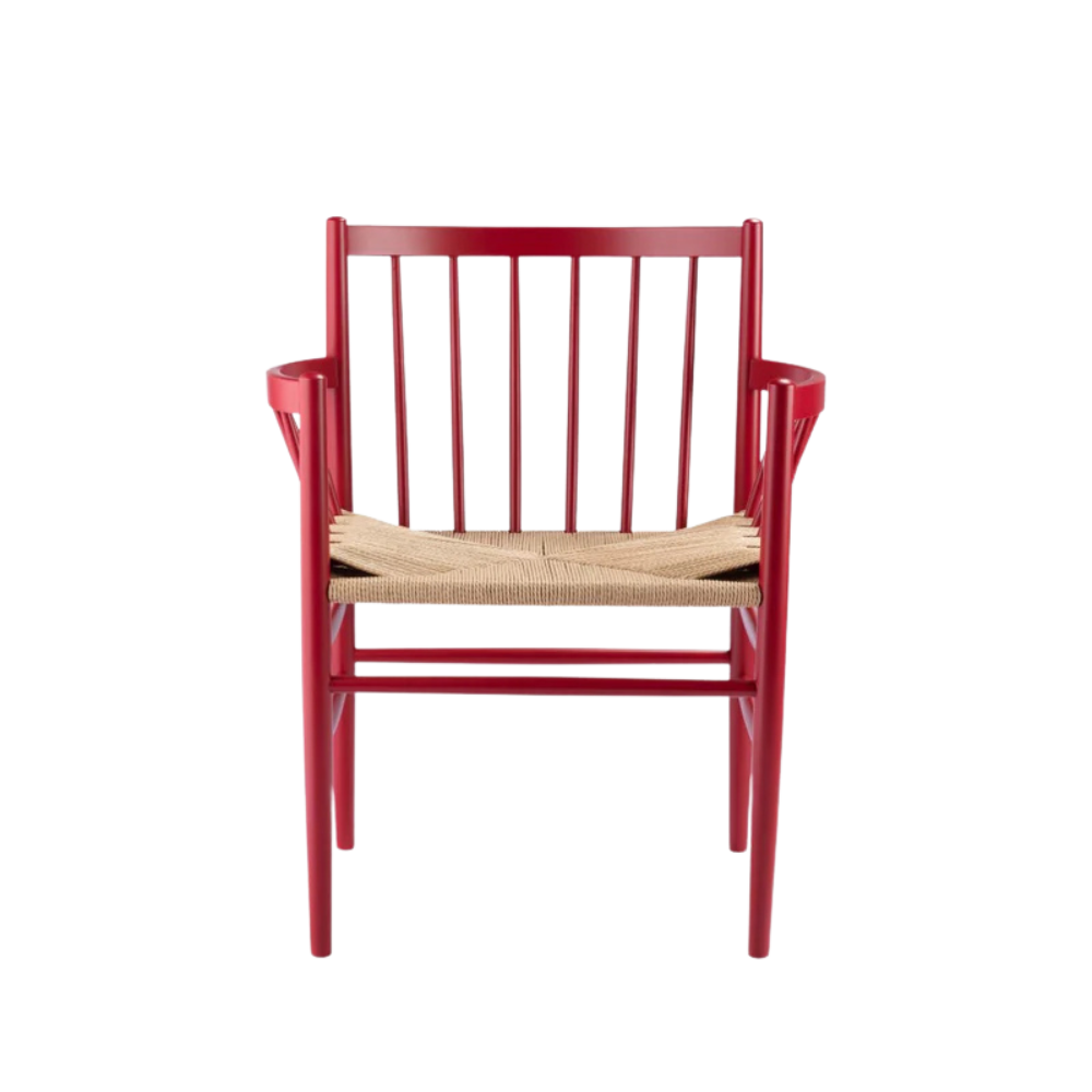 Med sin buede ryg, behagelige armlæn og solide konstruktion er J81 en stol, der både ser godt ud og føles rigtig at sidde i. Den passer smukt ind omkring spisebordet, men fungerer også flot som enkeltstående møbel i entré eller læsehjørne.