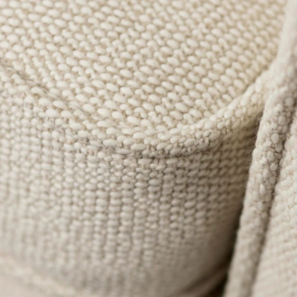 Sofaen er fremstillet i massiv eg, lakeret for at beskytte og fremhæve træets naturlige glød. Det stringente træstel står i elegant kontrast til hynderne, som er betrukket med DePloeg Prairie – et karakterfuldt tekstil, der tilfører varme, farvespil og stoflighed til det samlede udtryk. En kombination, der taler ind i både moderne og klassisk nordisk indretning.