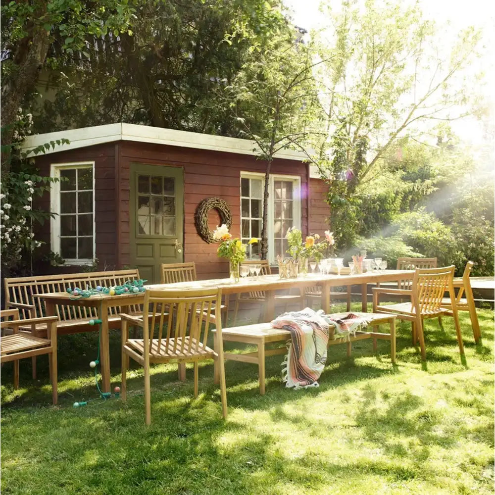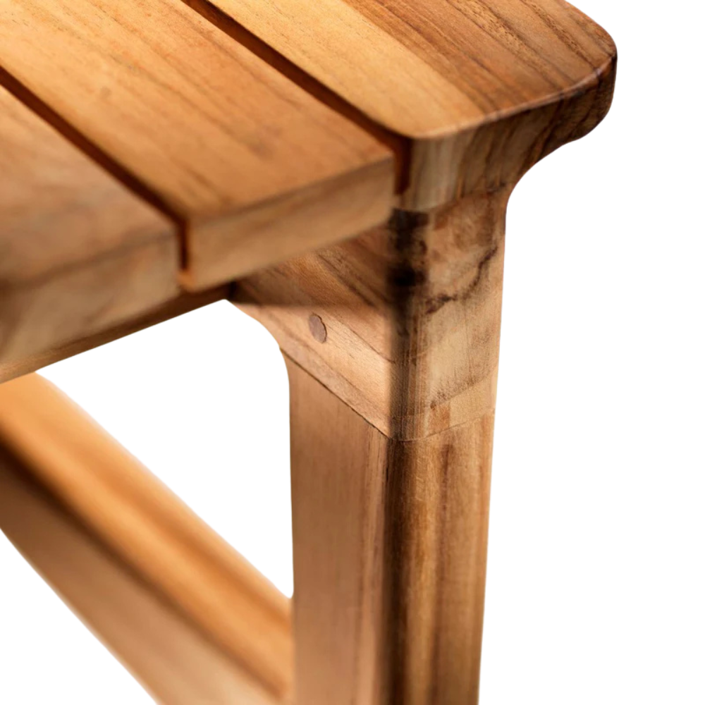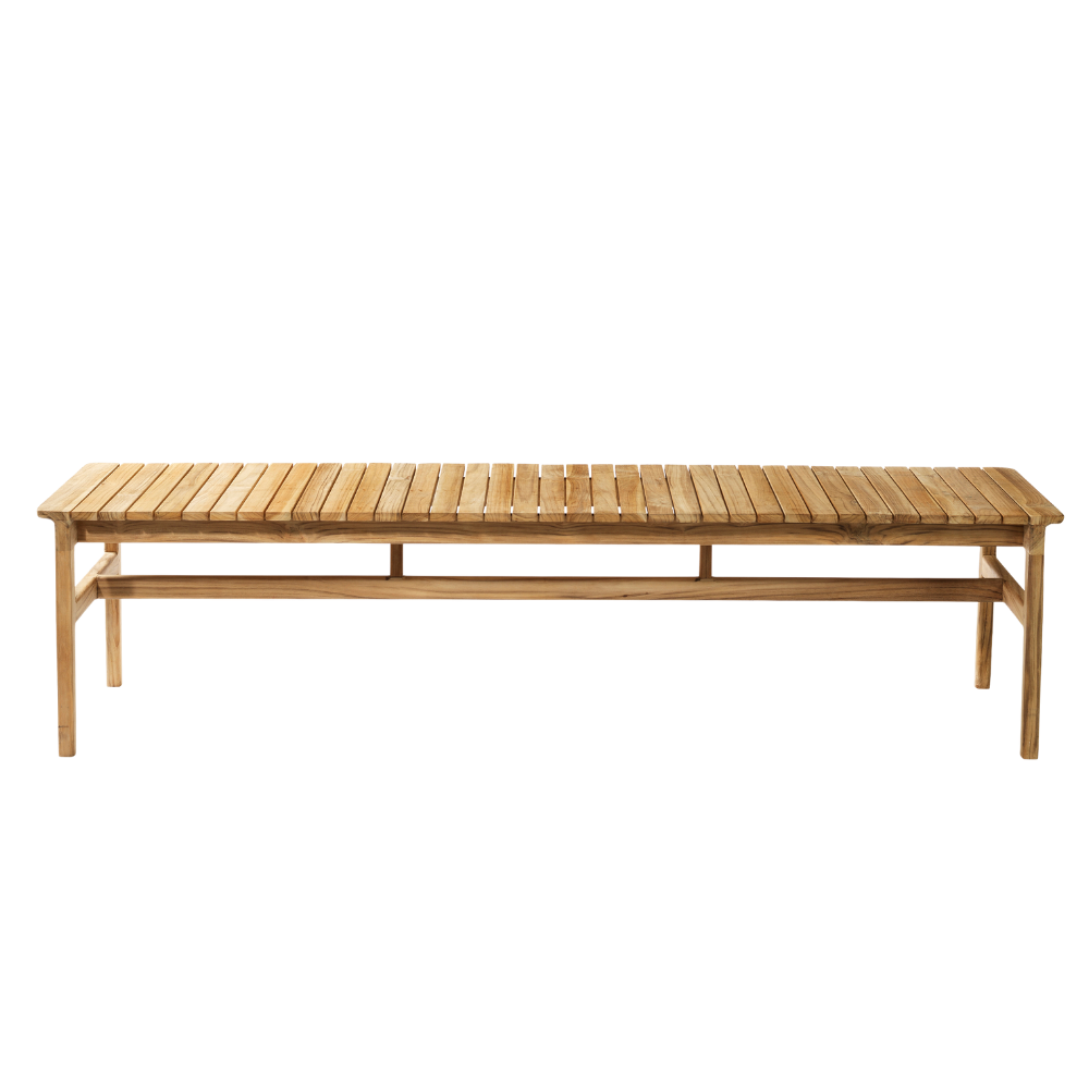 Den er fremstillet i massiv teaktræ og behandlet med olie, så den både fremhæver træets naturlige glød og beskytter mod vejr og vind. Den kompakte og åbne form gør bænken ideel til både spisebordsmiljøer, små terrasser og som fritstående siddeplads i haven.