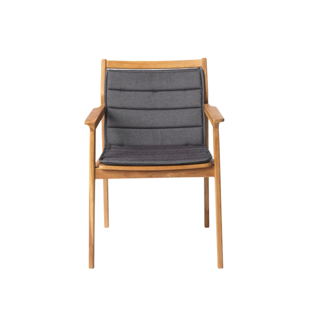 Med en tykkelse på 2 cm tilbyder hynden en behagelig siddekomfort, samtidig med at den bevarer stolens lette og elegante udtryk. Farven antracitgrå giver et tidløst og stilrent look, der passer perfekt til det nordiske udemiljø.
