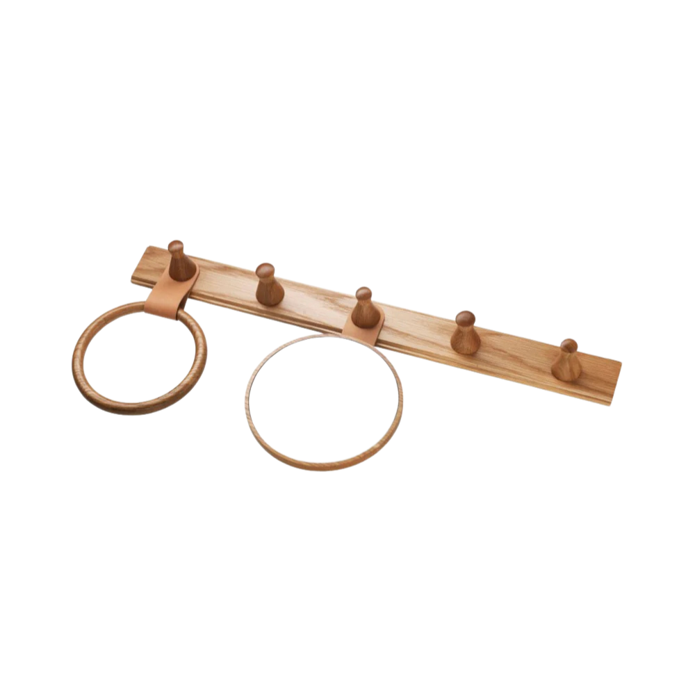 Knagerækken er fremstillet i lakeret egetræ og måler hele 60 cm i bredden, hvilket giver ekstra plads til jakker, tasker og hverdagens småting. Designet er skabt med fokus på både holdbarhed og æstetik, og den passer perfekt ind i alt fra det moderne hjem til det mere traditionelle.