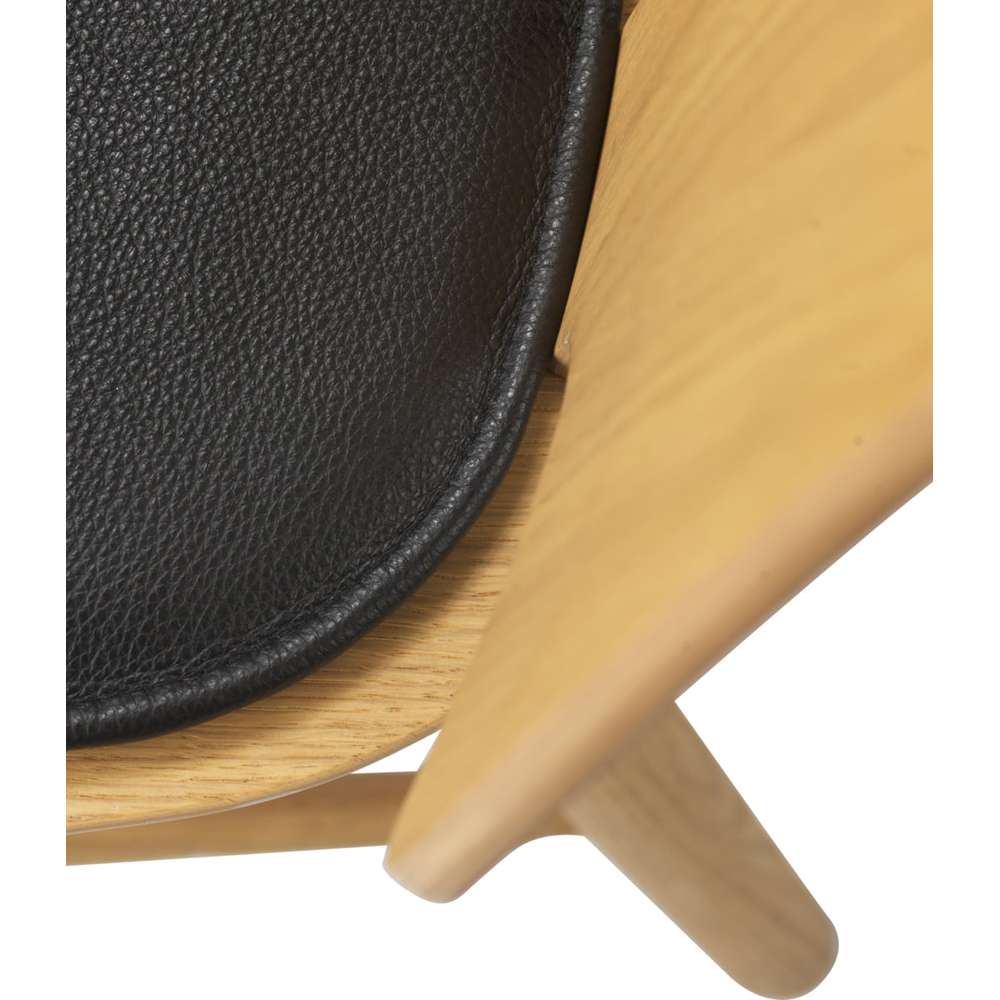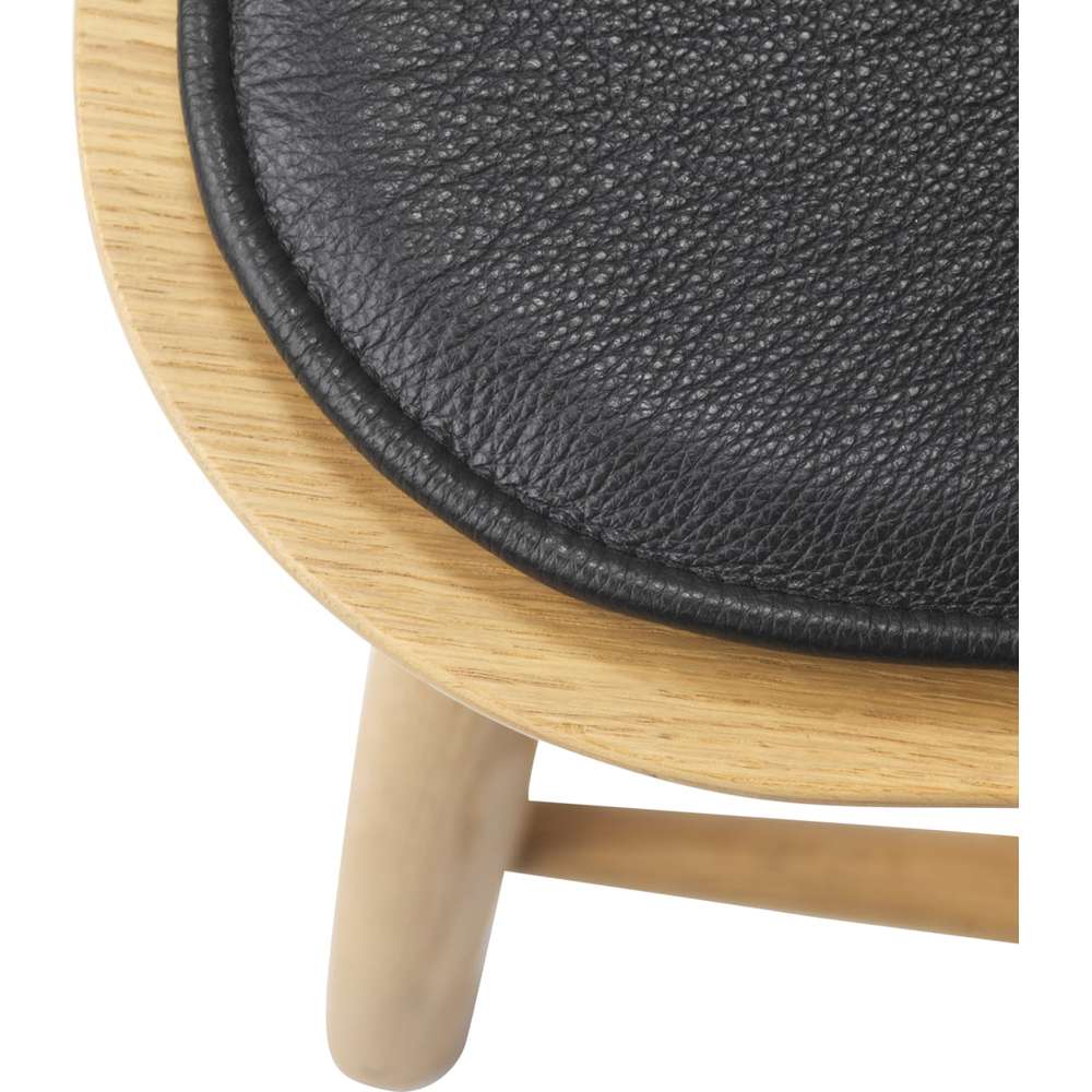 Hynden er udført i slidstærkt læder og polstret med en fast skumkerne, der giver støtte gennem hele måltidet. En skridsikker bagside sørger for, at hynden bliver, hvor den skal, selv ved hyppig brug.