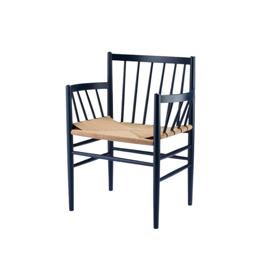 5.999,- kr.Udsalgspris 5.999,- kr.En klassisk spisebordsstol med armlæn, der kombinerer dansk designtradition med funktionel komfort.FDB J81 er designet af Jørgen Bækmark og er en videreudvikling af den populære J80-stol – nu med armlæn... -