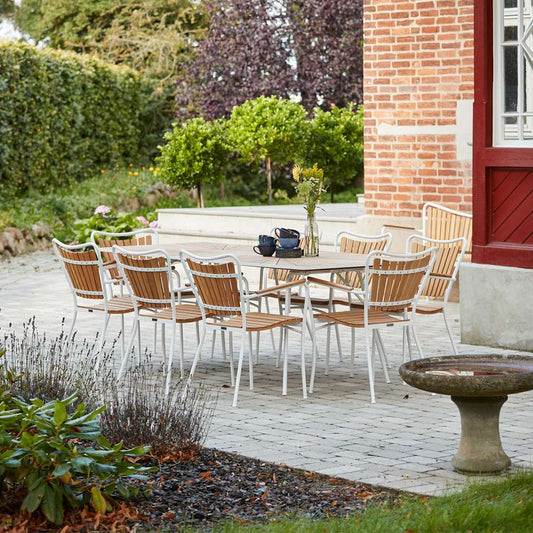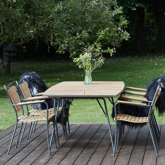 10.599,00 DKKUdsalgspris 10.599,00 DKKDet bådformede Marguerit havebord, med dets unikke design, er et godt alternativ til et rundt bord. Bordpladen er i bæredygtig teaktræ og stellet i rustfrit pulverlakeret aluminium. -