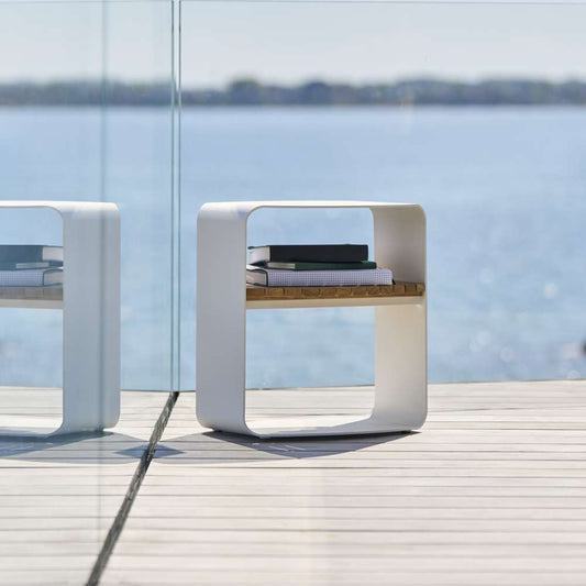 3.199,00 DKKUdsalgspris 3.199,00 DKKMindo 109 sidebord 48x35 cm er en elegant og funktionel tilføjelse til dit udendørs loungeområde. Designet kombinerer pulverlakeret aluminium med teaktræ, hvilket giver en moderne og holdbar konstruktion, der er... -