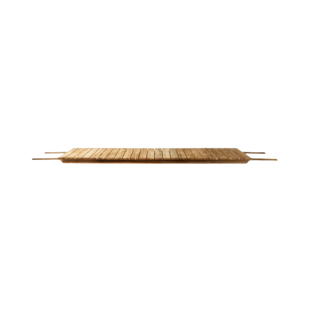 Mellempladen er fremstillet i massiv teaktræ, som er kendt for sin naturlige styrke, holdbarhed og modstandsdygtighed over for vind og vejr. Den olierede overflade fremhæver teaktræets smukke glød og karakteristiske åremønstre.