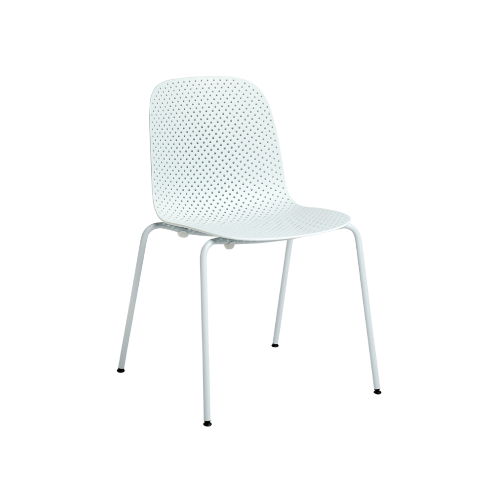 Den vejrbestandige konstruktion med stålstel og polypropylenskal sikrer både stabilitet og lang holdbarhed. Stolen er stabelbar og fås både med og uden armlæn, så den nemt kan tilpasses forskellige behov og omgivelser.
