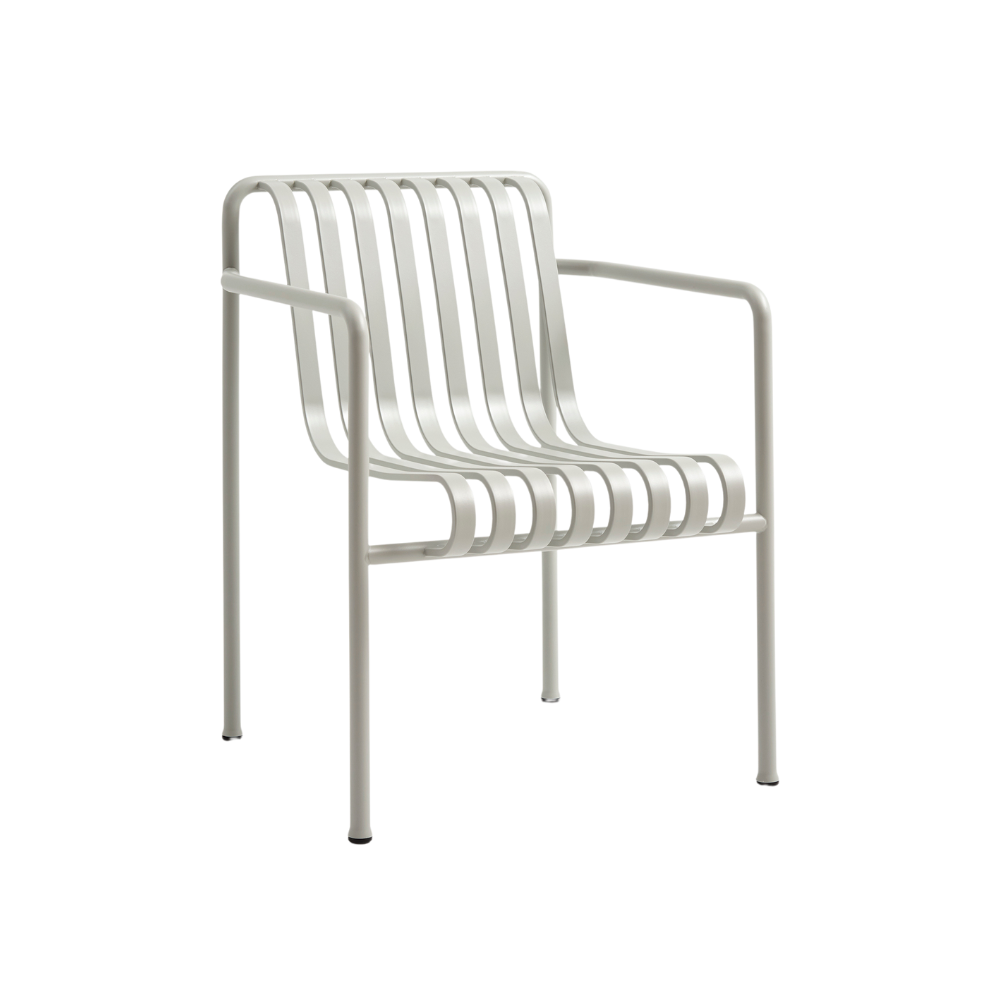 Stolen er fremstillet i pulverlakeret stål, som gør den både vejrbestandig og nem at vedligeholde. Armlænene sikrer god støtte, og den åbne konstruktion gør, at regnvand hurtigt ledes væk. En ideel stol til spisearrangementer og samvær i haven, på altanen eller terrassen – alene eller i sæt.