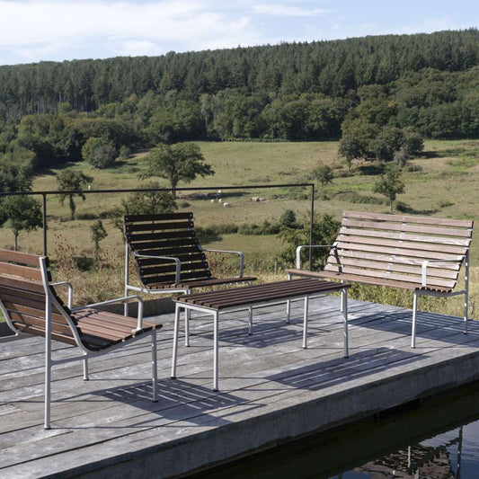 3.499,- kr.Udsalgspris 3.499,- kr.Traverse havebænken fra HAY kombinerer lethed og robusthed i ét elegant møbel, der passer perfekt til både små og store uderum. Designet i trykstøbt aluminium og varmebehandlet, olieret ask, får... -