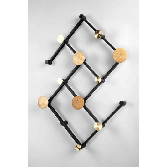 1.314,00 DKKUdsalgspris 1.051,00 DKKX•TEND knagerække består af et samlesæt på:\n\n 8 sorte arme (udført i genbrugsplast)\n 4 træknopper (Ø63 mm)\n 6 messingknopper i 2 størrelser (Ø28 og Ø38 mm)\n-20% -