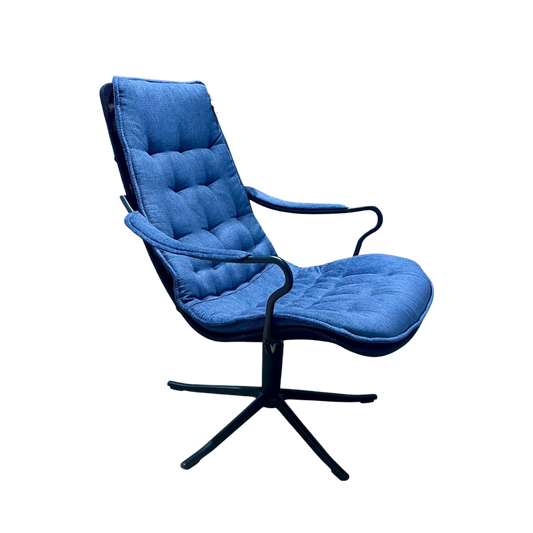 11.274,- kr.Udsalgspris 11.274,- kr.Conform Bravo med lav ryg er en afslappet og elegant hvilestol i et grafisk design. Det blueberry-blå polyesterbetræk giver et friskt, roligt udtryk, mens det sorte aluminiumsstel sikrer et svævende,... -