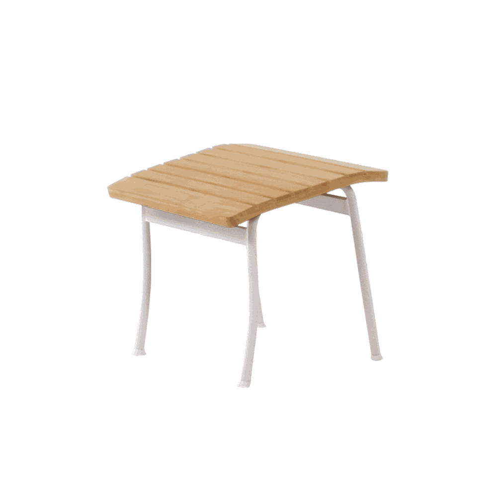 Marguerit fodskammel til loungestolen er klassisk dansk design. Marguerit er lavet i bæredygtig indonesisk teak og rustfrit stel i pulverlakeret aluminium. Fodskamlen passer også til Marguerit havestol og bænk.