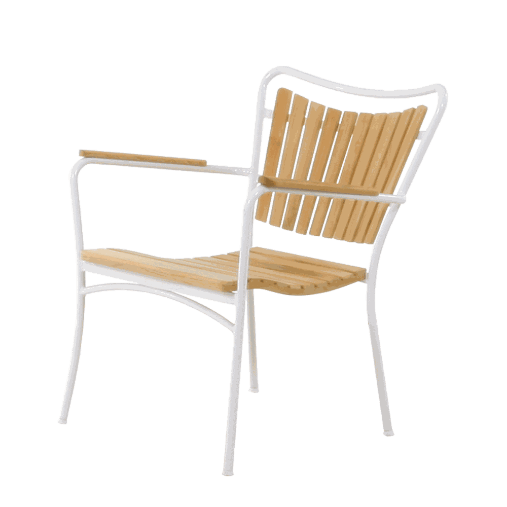 Marguerit loungestolen er klassisk dansk design. Stolens kurvede sæde, komfortable ryg er begge ergonomisk designet. Marguerit er lavet i bæredygtig indonesisk teak og rustfrit stel i pulverlakeret aluminium - og så kan den selvfølgelig stables. Til Marguerit loungestolen fås også fodskammel og sidebord.
