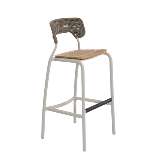 5.699,00 DKKUdsalgspris 5.699,00 DKKMindo 102 udendørs barstol forener tre stærke elementer: teaktræets naturlige varme, aluminiummets lethed og rebets fleksible komfort. Resultatet er en moderne barstol med et afslappet, men eksklusivt udtryk – perfekt... -