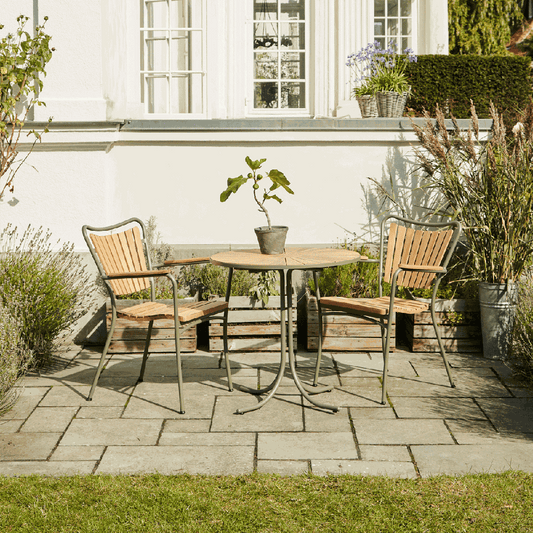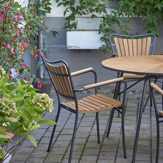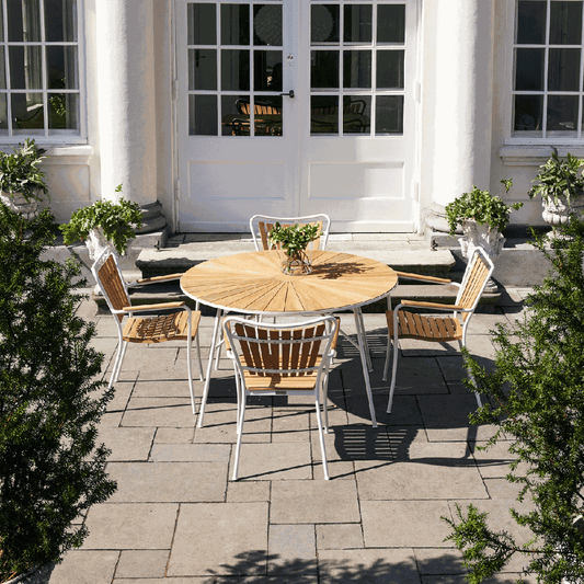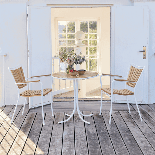 2.999,00 DKKUdsalgspris 2.999,00 DKKDet runde Marguerit cafébord er perfekt til hygge på terrassen med dets unikke design. Bordpladen er i bæredygtig teaktræ og stellet i rustfrit pulverlakeret aluminium. -