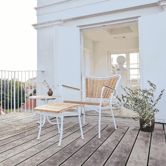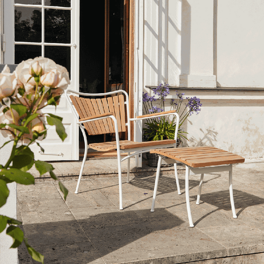1.149,00 DKKUdsalgspris 1.149,00 DKKMarguerit fodskammel til loungestolen er klassisk dansk design. Marguerit er lavet i bæredygtig indonesisk teak og rustfrit stel i pulverlakeret aluminium. Fodskamlen passer også til Marguerit havestol og bænk. -