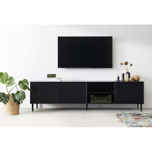 13.742,- kr.Udsalgspris 13.742,- kr.TV-møbel fra Mistral med sorte ben og klapper i sort stof, der ikke blokerer for lyd eller fjernbetjeningen. -