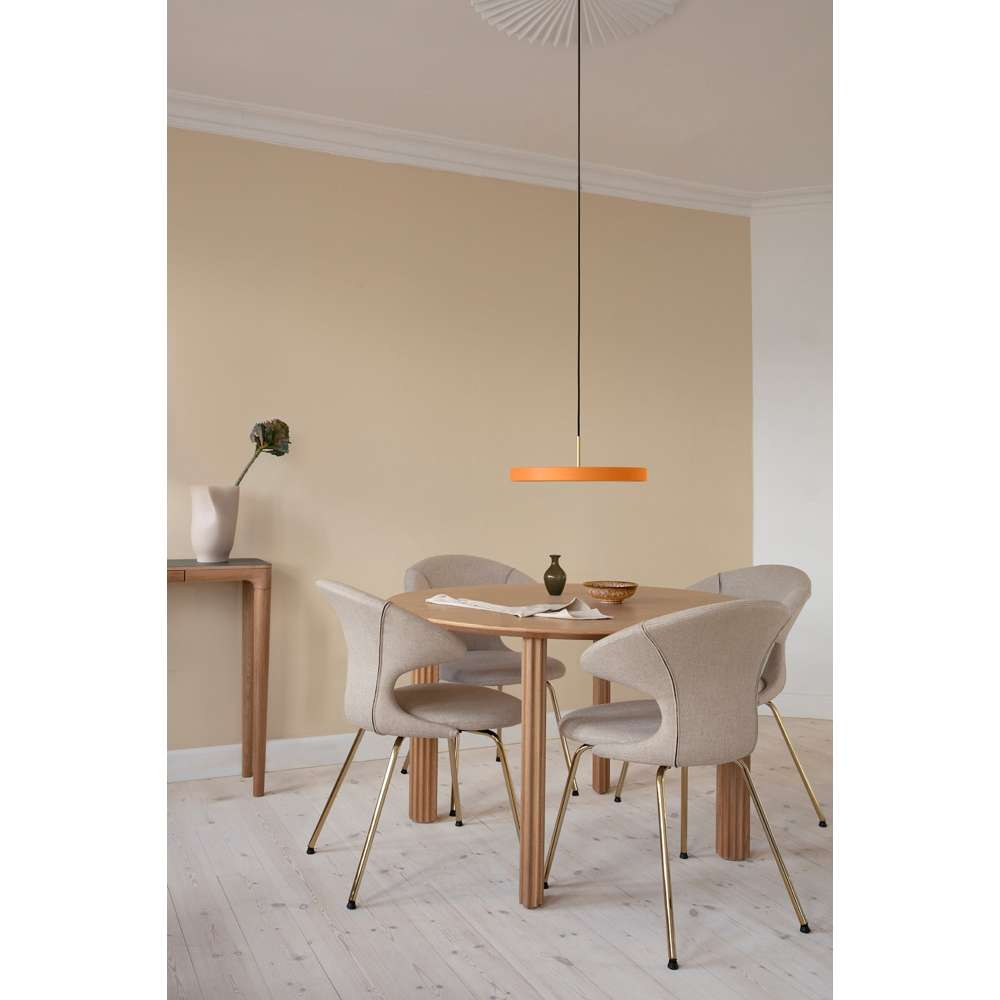 Umage Asteria Medium Saffron Yellow Ø 43 x 14 cm pendel er en smuk og funktionel lampe, der kombinerer skandinavisk minimalisme med moderne teknologi. Den varme safrangule farve tilfører liv, energi og personlighed til din indretning, mens det enkle og elegante design gør den ideel over spisebordet, i køkkenet eller på kontoret.
