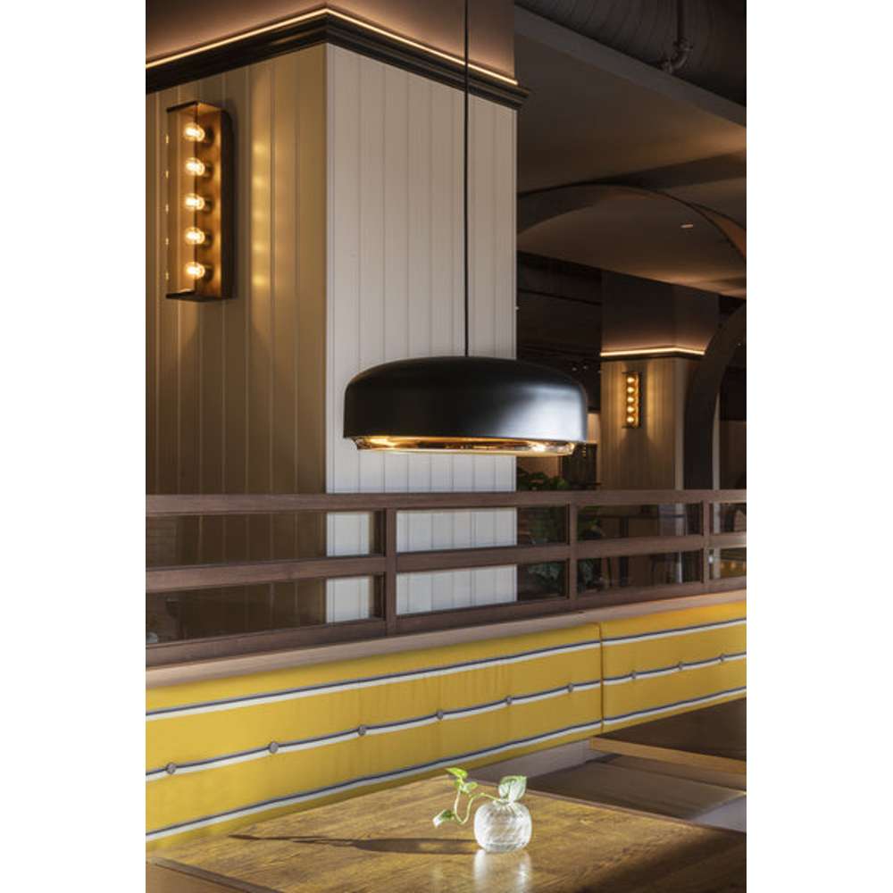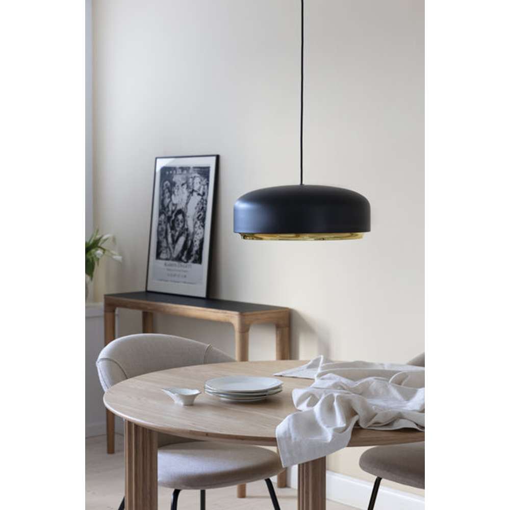 Lampen er udført i sort børstet stål med en messing bund, der giver et sofistikeret udseende. Indvendigt er LED-panelet dækket af en diffuser, der sikrer et behageligt lys, der ikke blænder. Hazel pendlen er velegnet til køkkenet eller som et elegant tilbehør i et hjørne af stuen.