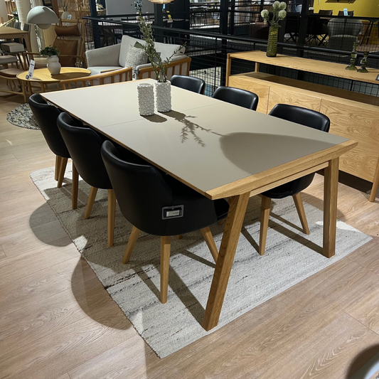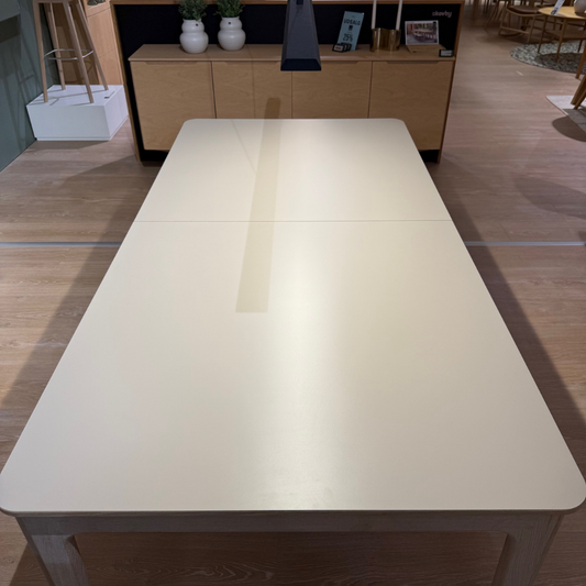 13.999,- kr.Udsalgspris 13.999,- kr.SM31 fra Skovby er et spisebord, hvor æstetik og funktion går hånd i hånd. Bordpladen er udført i varmgrå højtrykslaminat – et slidstærkt og rengøringsvenligt materiale, som gør bordet oplagt...