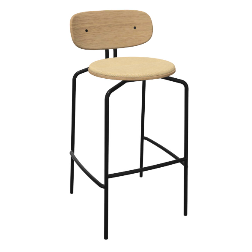 UMAGE Curious Barstol forener skandinavisk elegance med komfort og bæredygtighed. Med sin let buede sædeform i egefiner og et diskret, sort stålstel tilfører stolen et luftigt og raffineret udtryk, der passer perfekt til moderne køkkenmiljøer og åbne rum.