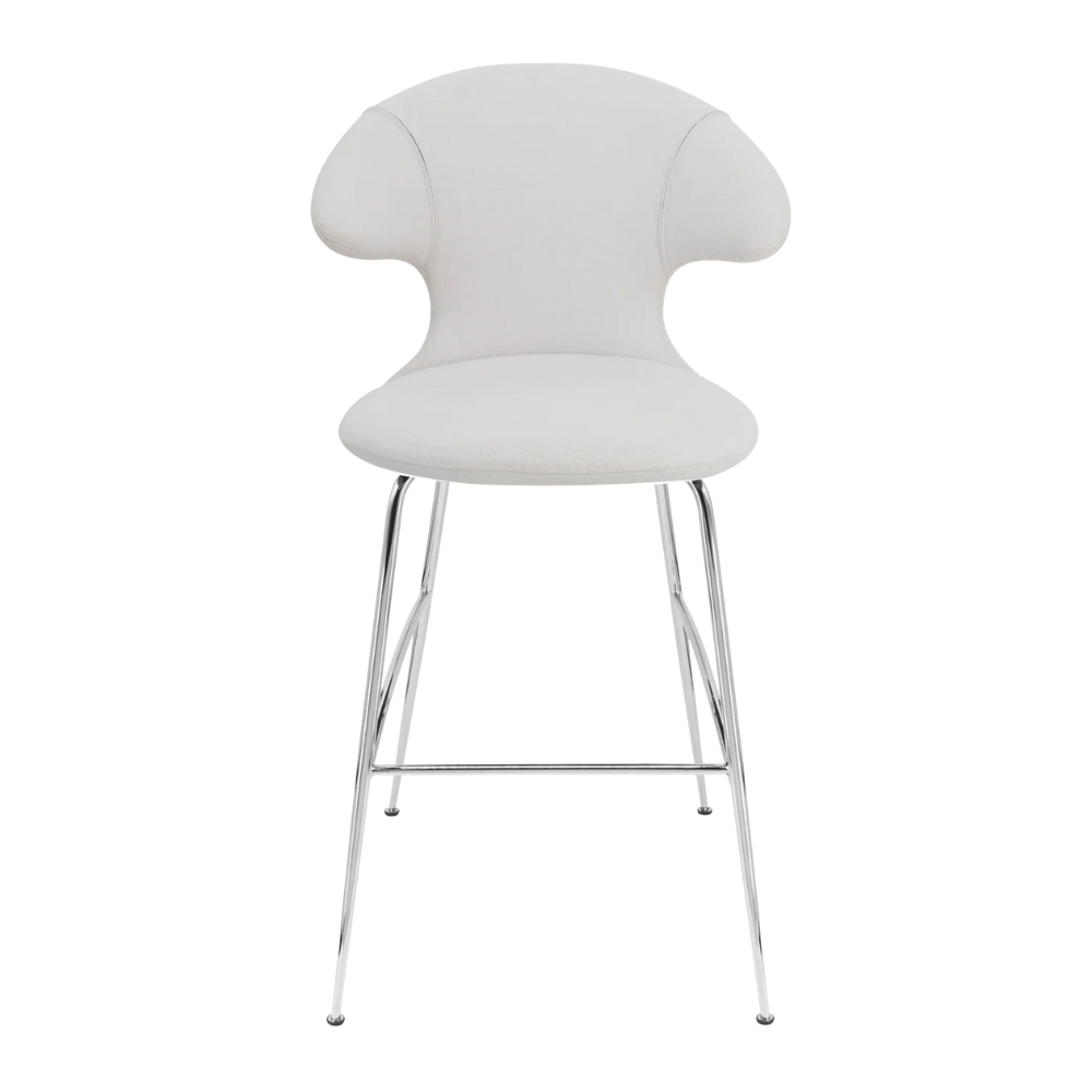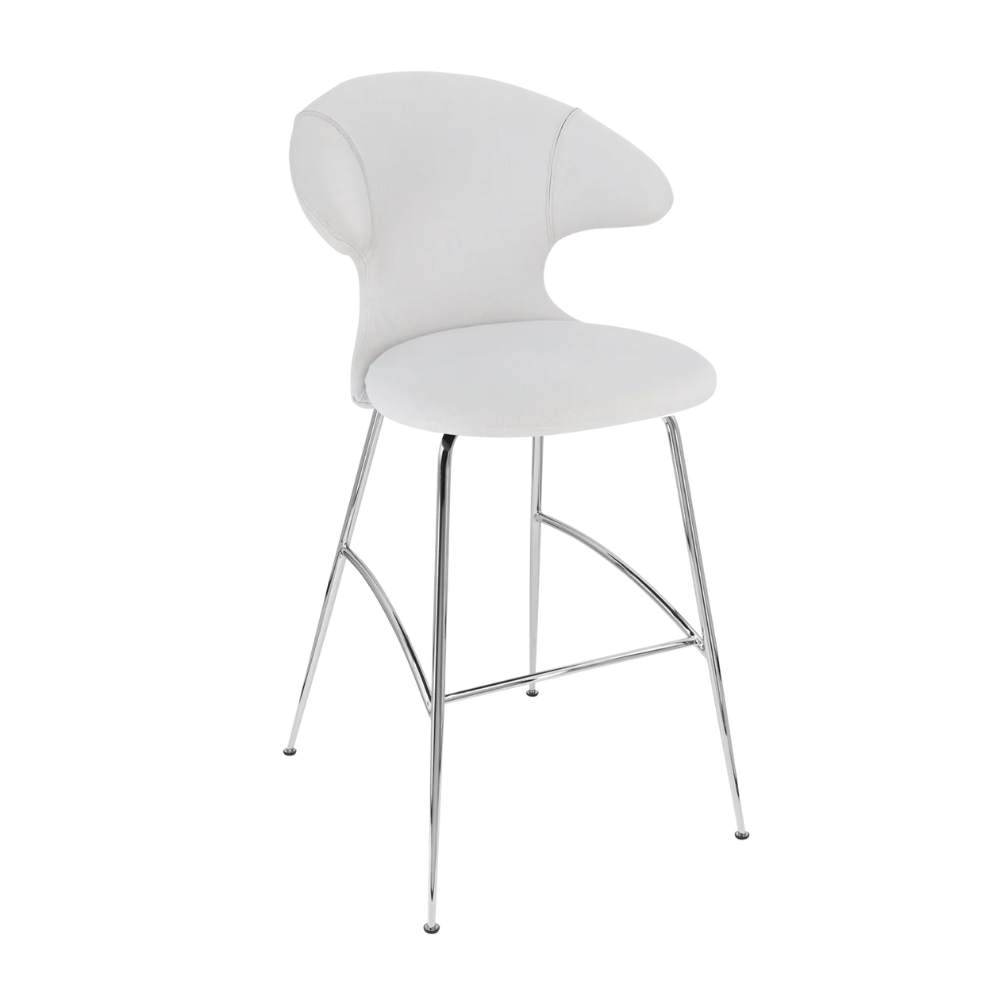 En moderne barstol med fokus på både komfort og ansvarlighed. Umages Time Flies er designet med en svungen ryg og bløde armlæn, som giver en støttende og behagelig siddeoplevelse. Det lette stel i krom skaber et rent, skandinavisk udtryk, mens sædet i genanvendt polyester bringer både varme og bæredygtighed ind i rummet.