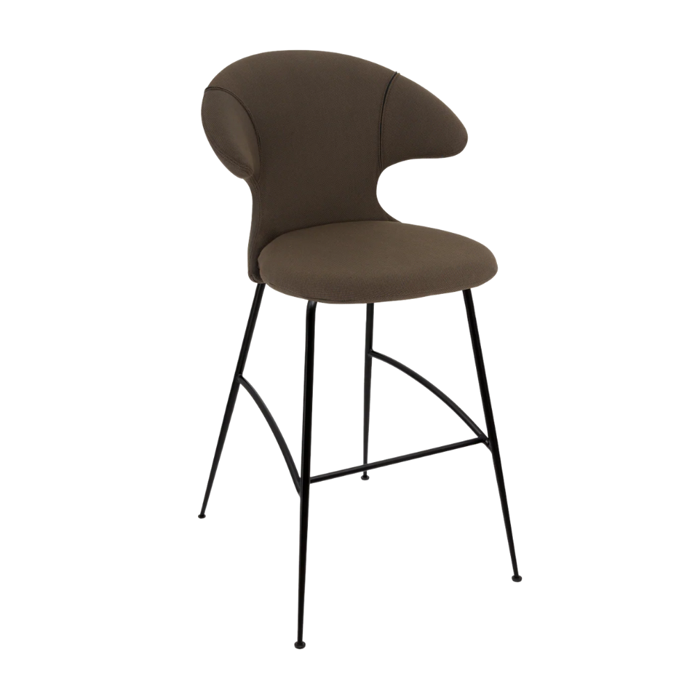 Med sit sorte stålstel og bløde polstring i genanvendt polyester er denne Time Flies barstol fra Umage skabt til at give hjemmet et moderne og afbalanceret udtryk. Designet er let og svungent, med god støtte i både ryg og armlæn – og en komfortabel siddehøjde på 75 cm, perfekt til køkkenøen eller den høje bardisk.
