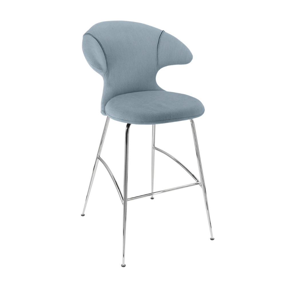 En moderne barstol med fokus på både komfort og ansvarlighed. Umages Time Flies er designet med en svungen ryg og bløde armlæn, som giver en støttende og behagelig siddeoplevelse. Det lette stel i krom skaber et rent, skandinavisk udtryk, mens sædet i genanvendt polyester bringer både varme og bæredygtighed ind i rummet.