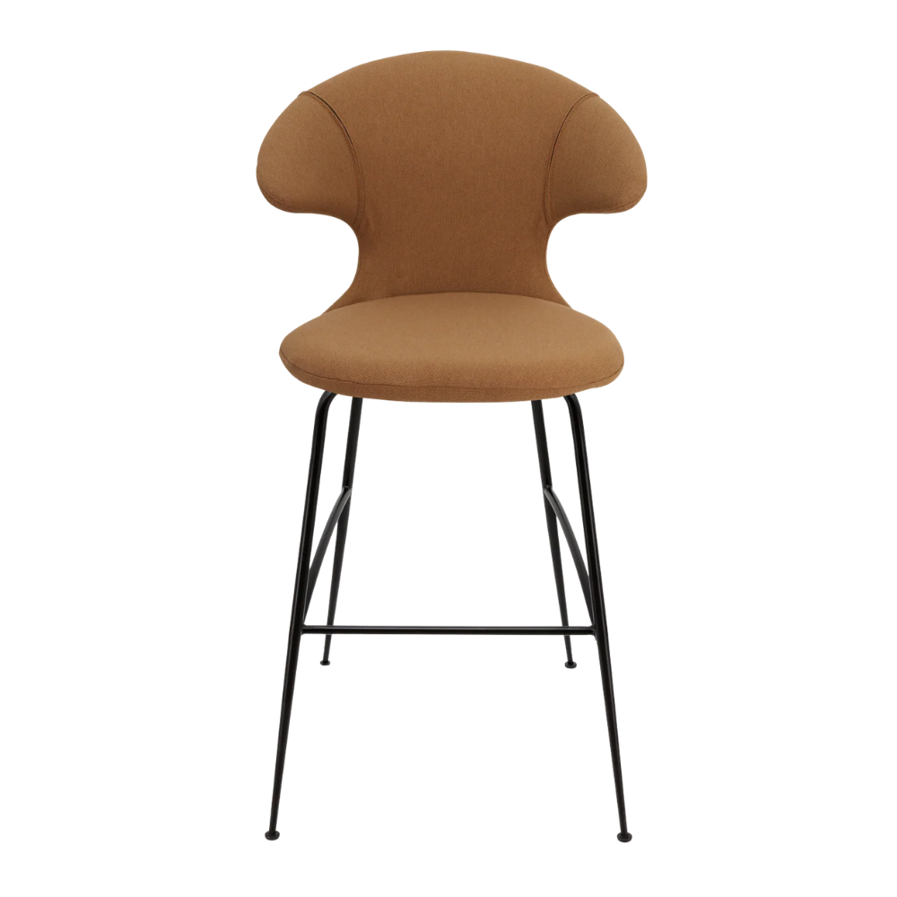 Med sit sorte stålstel og bløde polstring i genanvendt polyester er denne Time Flies barstol fra Umage skabt til at give hjemmet et moderne og afbalanceret udtryk. Designet er let og svungent, med god støtte i både ryg og armlæn – og en komfortabel siddehøjde på 75 cm, perfekt til køkkenøen eller den høje bardisk.