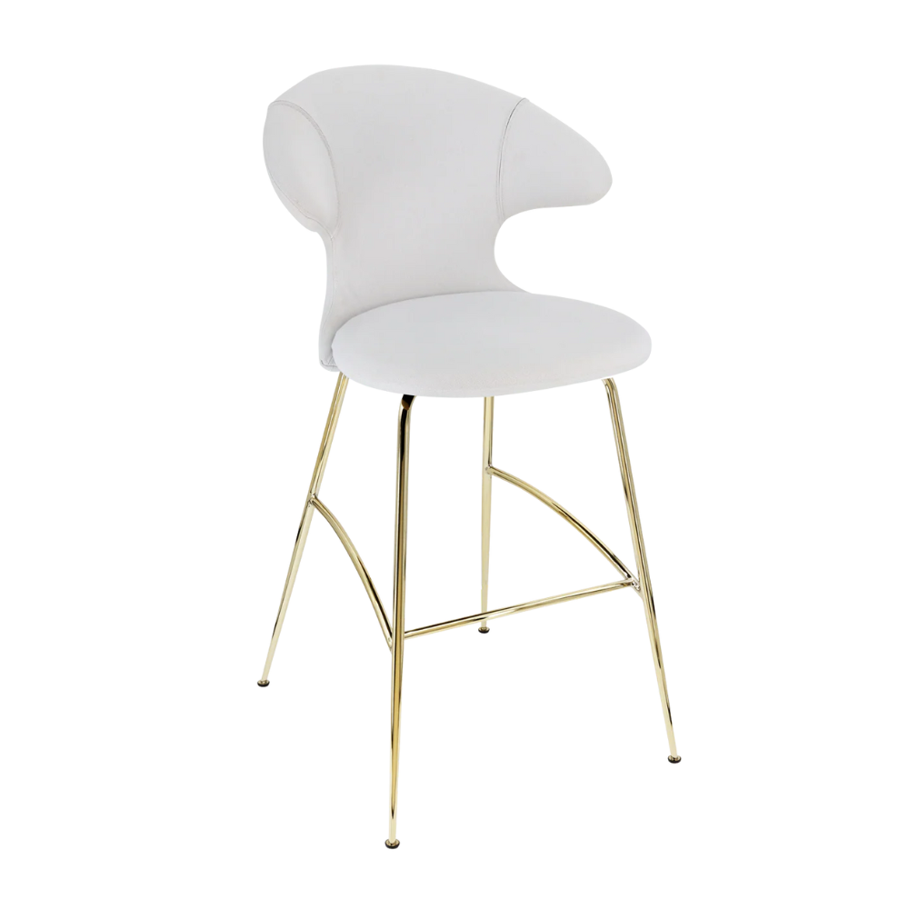 Umage Time Flies spisebordsstol kombinerer elegance og ansvarlighed på fineste vis. Med et stel i varm messing og polstring i genanvendt polyester får du både æstetik og bæredygtighed – uden kompromis.