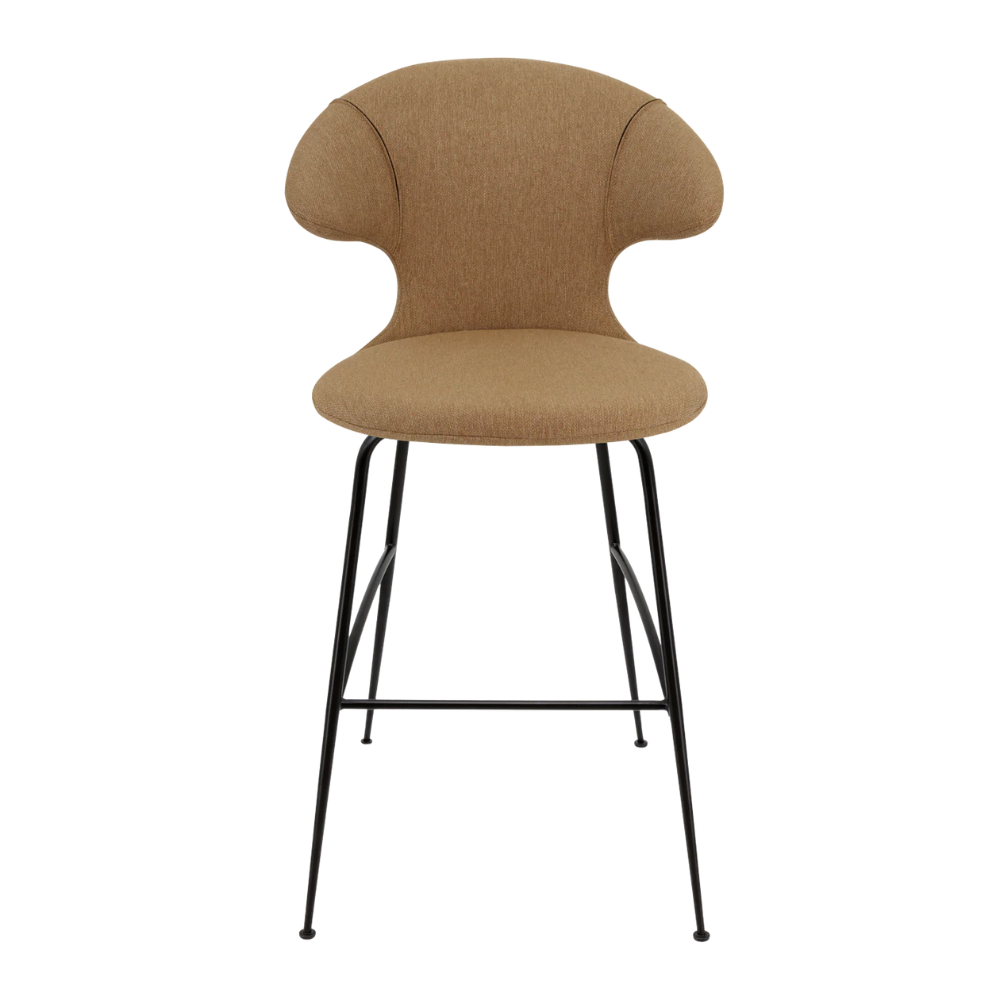 Med sit sorte stålstel og bløde polstring i genanvendt polyester er denne Time Flies barstol fra Umage skabt til at give hjemmet et moderne og afbalanceret udtryk. Designet er let og svungent, med god støtte i både ryg og armlæn – og en komfortabel siddehøjde på 75 cm, perfekt til køkkenøen eller den høje bardisk.