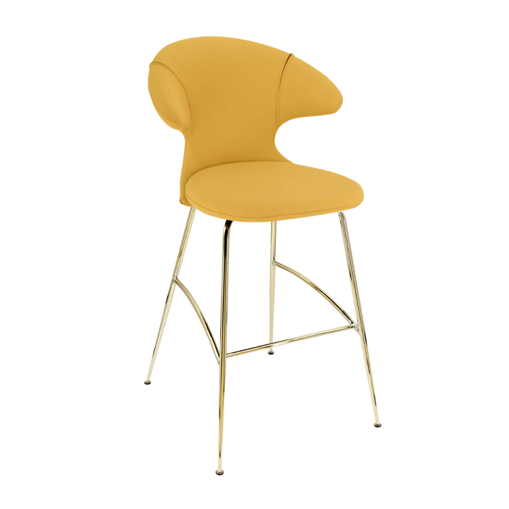 Umage Time Flies spisebordsstol kombinerer elegance og ansvarlighed på fineste vis. Med et stel i varm messing og polstring i genanvendt polyester får du både æstetik og bæredygtighed – uden kompromis.