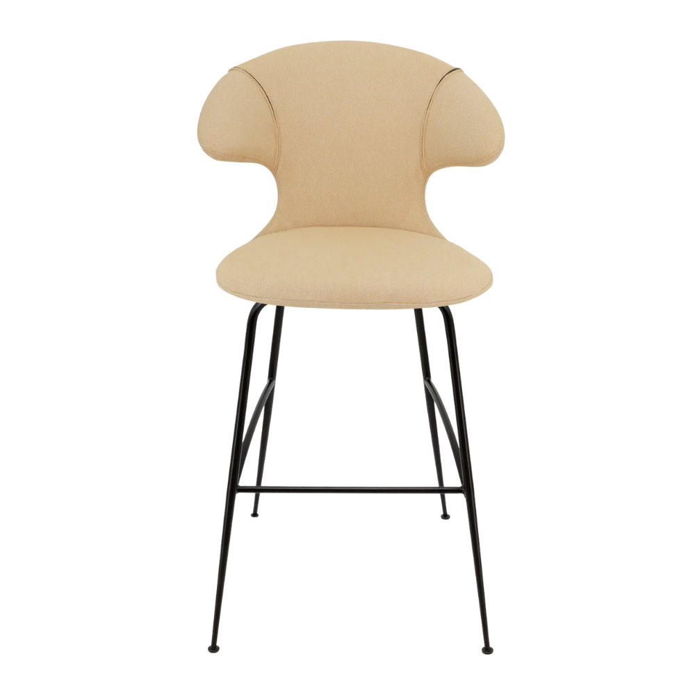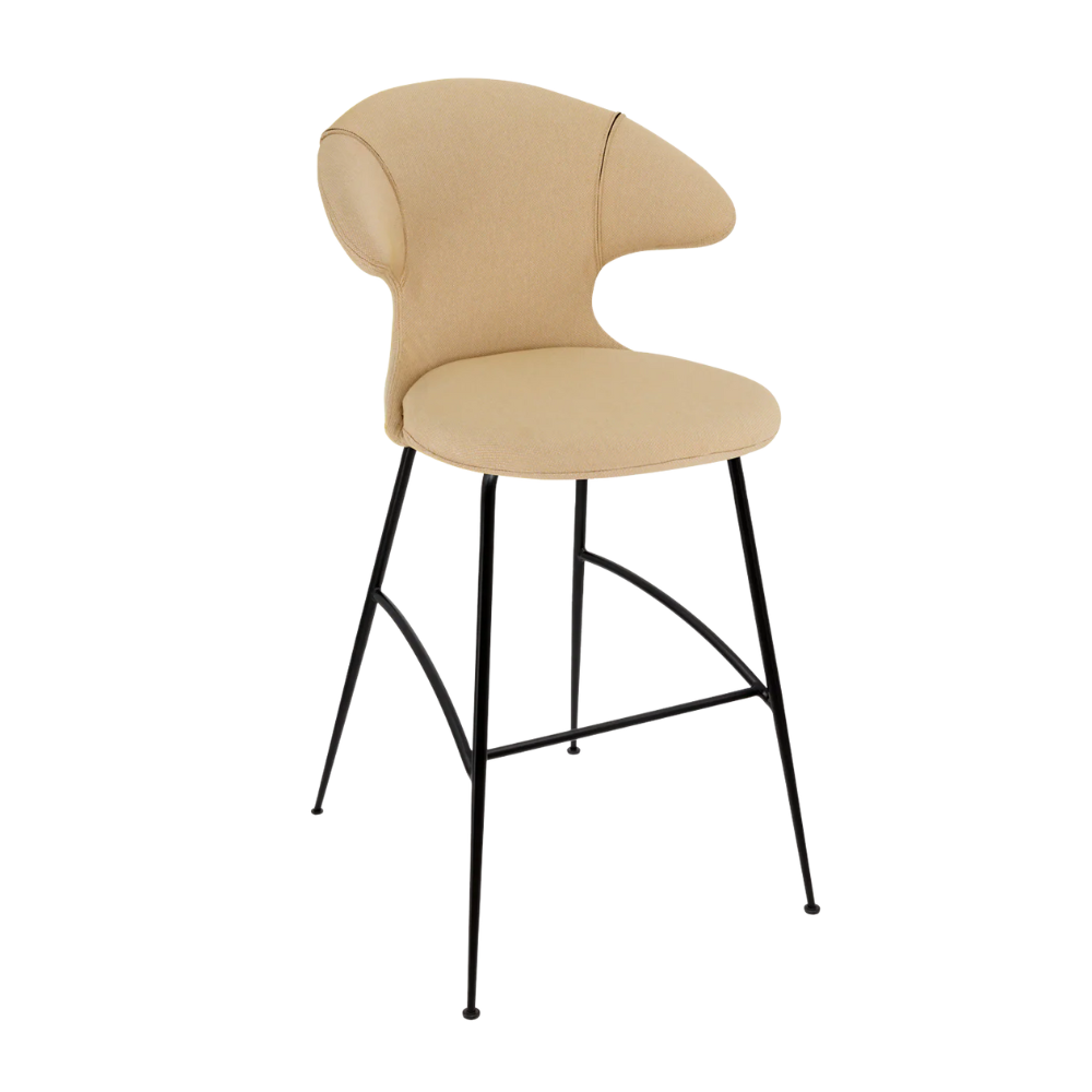 Med sit sorte stålstel og bløde polstring i genanvendt polyester er denne Time Flies barstol fra Umage skabt til at give hjemmet et moderne og afbalanceret udtryk. Designet er let og svungent, med god støtte i både ryg og armlæn – og en komfortabel siddehøjde på 75 cm, perfekt til køkkenøen eller den høje bardisk.