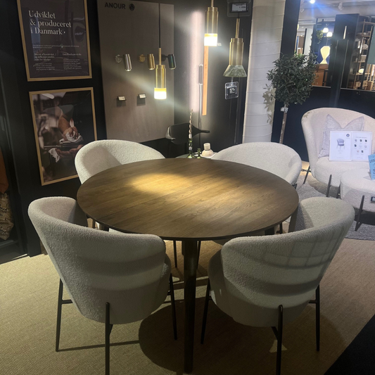 7.999,- kr.Udsalgspris 7.999,- kr.Bologna spisebord med udtræk fra Svane Design er et smukt, rundt spisebord i massiv røget egetræ. Det mørke træ giver et varmt og roligt udtryk, og den runde form skaber... -
