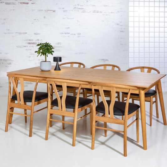 1.599,- kr.Udsalgspris 1.599,- kr.Victor fra Svane Design er en elegant og alsidig spisestol, hvor naturlige materialer og tidløs form går op i en højere enhed. Den bløde siddeflade i sort læder giver både... -