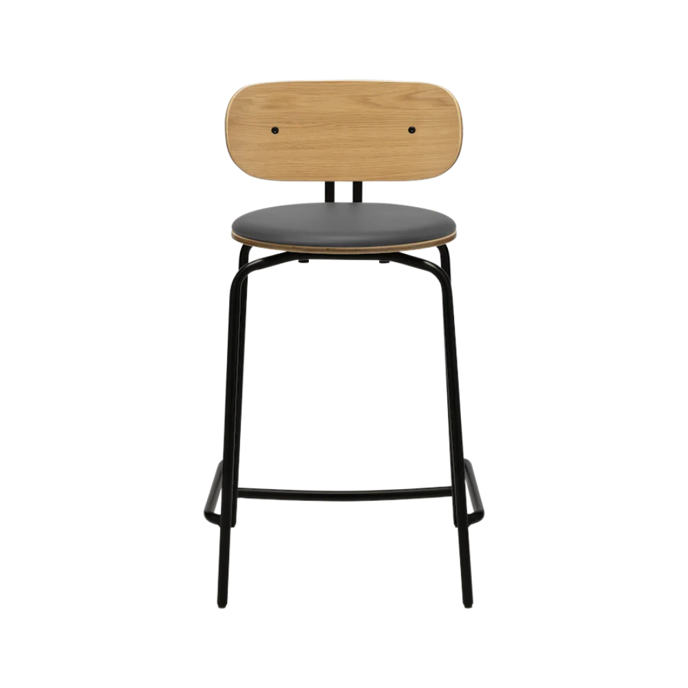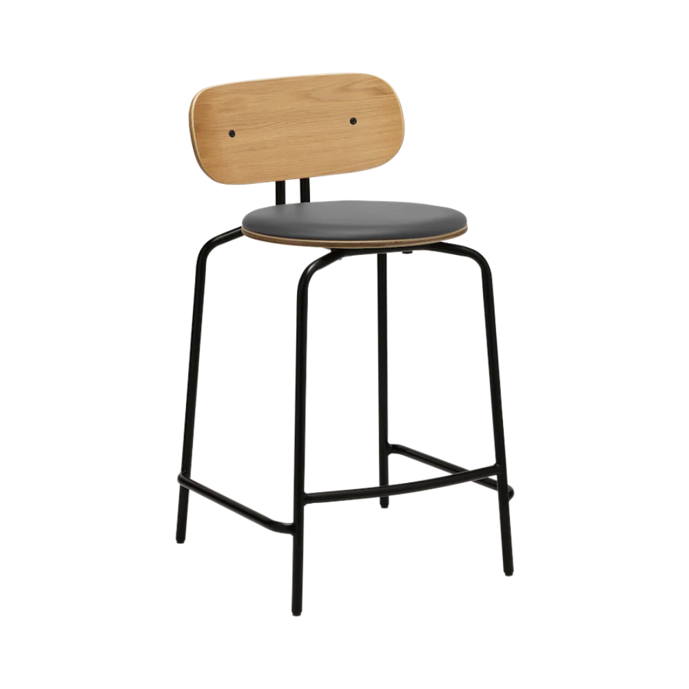 Curious Counterstolen fra Umage er en raffineret kombination af naturligt træ, sort stål og læder – et design, der taler til både øjet og kroppen. Det bløde lædersæde tilfører komfort og luksus, mens det sorte stel skaber et markant udtryk mod det lyse egefiner.