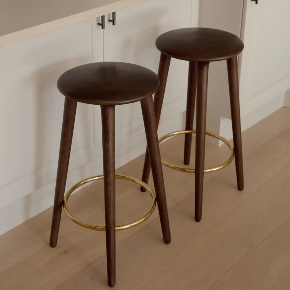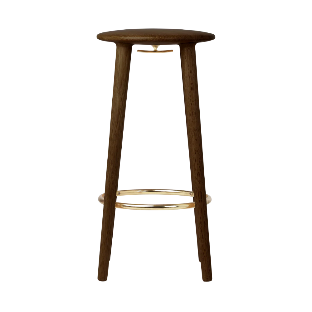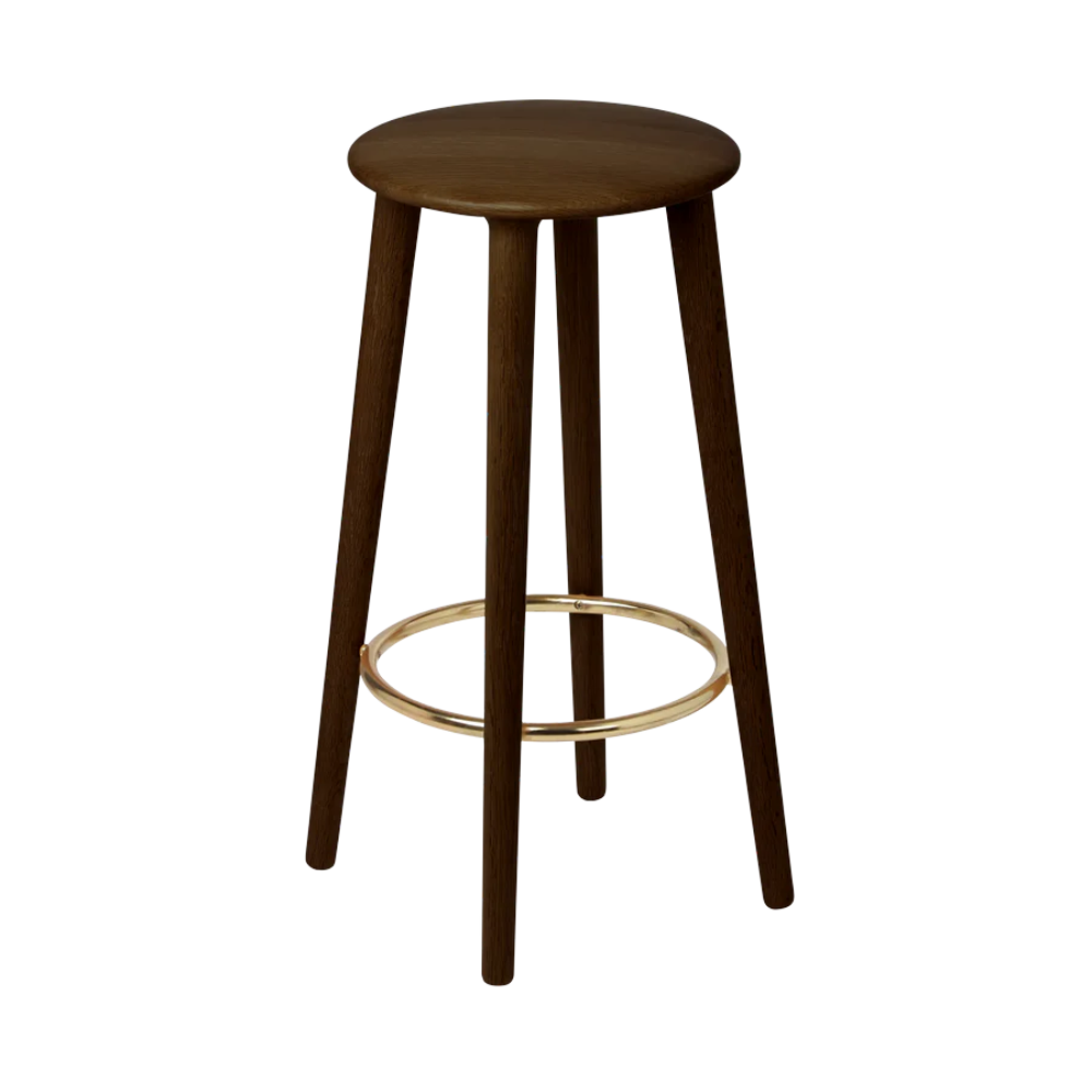 Umage The Socialite Counterstol i mørk eg forener klassisk nordisk design med moderne funktionalitet. Den mørke finish tilfører rummet dybde og varme, mens de elegante aluminiumselementer med messingfinish skaber en subtil kontrast, der løfter hele udtrykket.